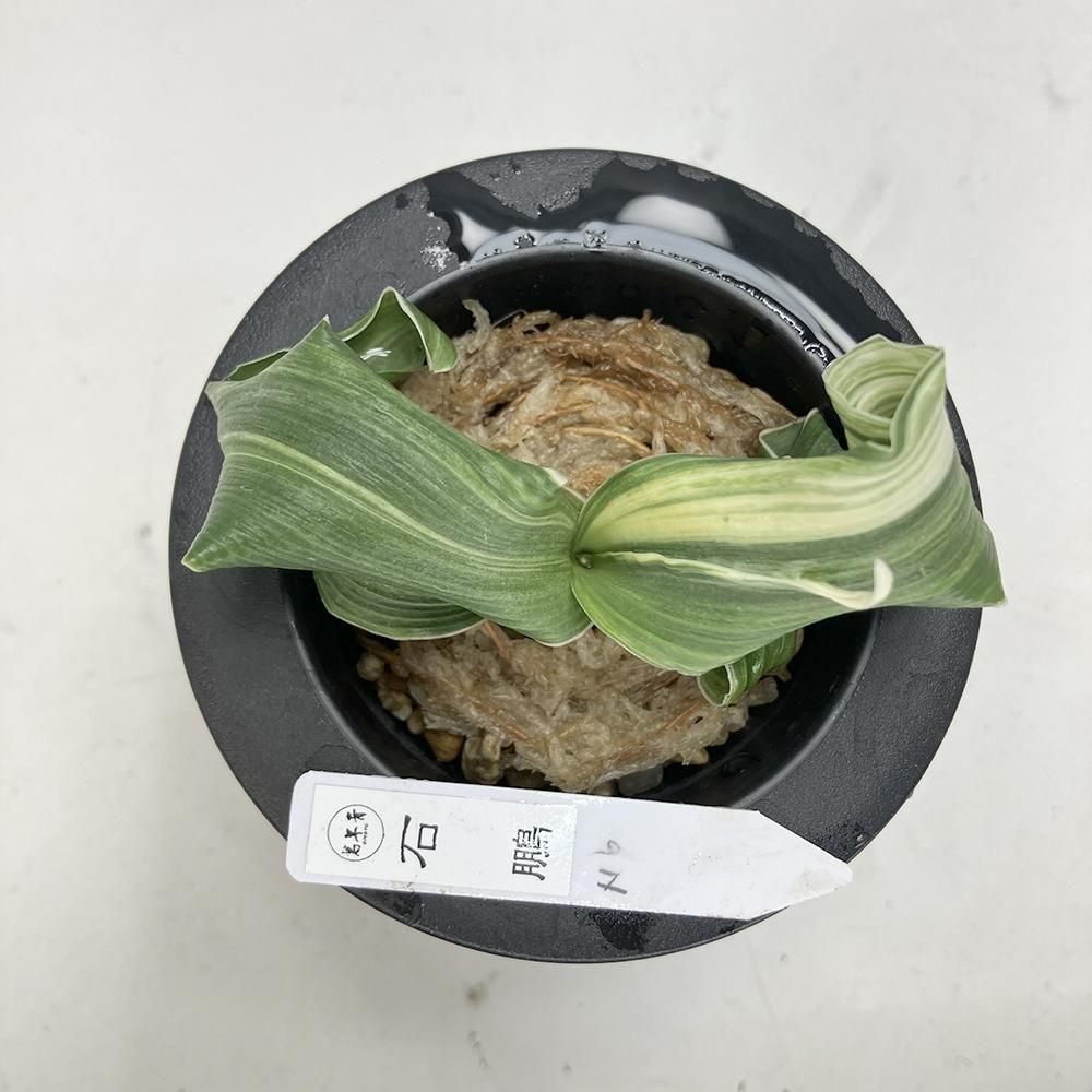麒麟系の『縞獅子』に突然、純白の図が現れたもの。繁殖した親、子とも鮮明な図が入り固定する。一時期『鶴の舞の図』と称されていたとおり巻きが良い。本種は雅糸竜などは『鶴の舞』に似るが、図が出たためか少し小型で葉幅が狭い。時に横へ大きく伸びる葉や鎌葉も出す。