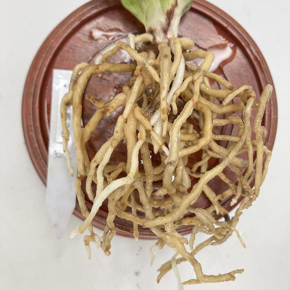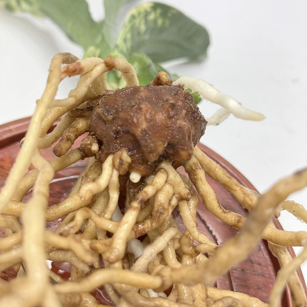 芋底は凸凹しているが固まっていて、昨年は短い根がしかなかったが、今年は充実!