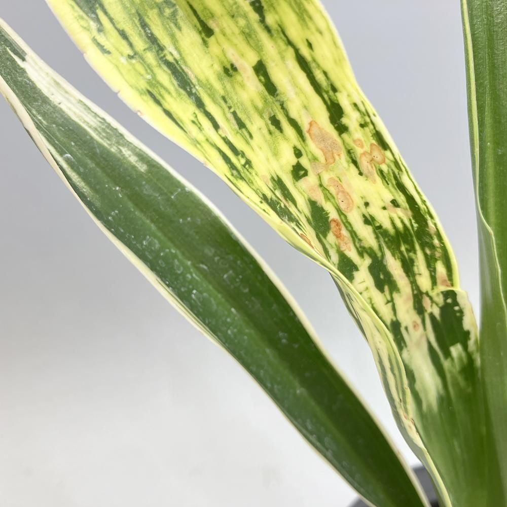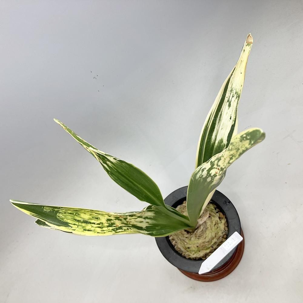 『都の城』に図斑が現れたもの。濃緑色の葉一面に純白で大きい図が現れ、所々に緑色の水玉模様が残る。図の冴えは良い。