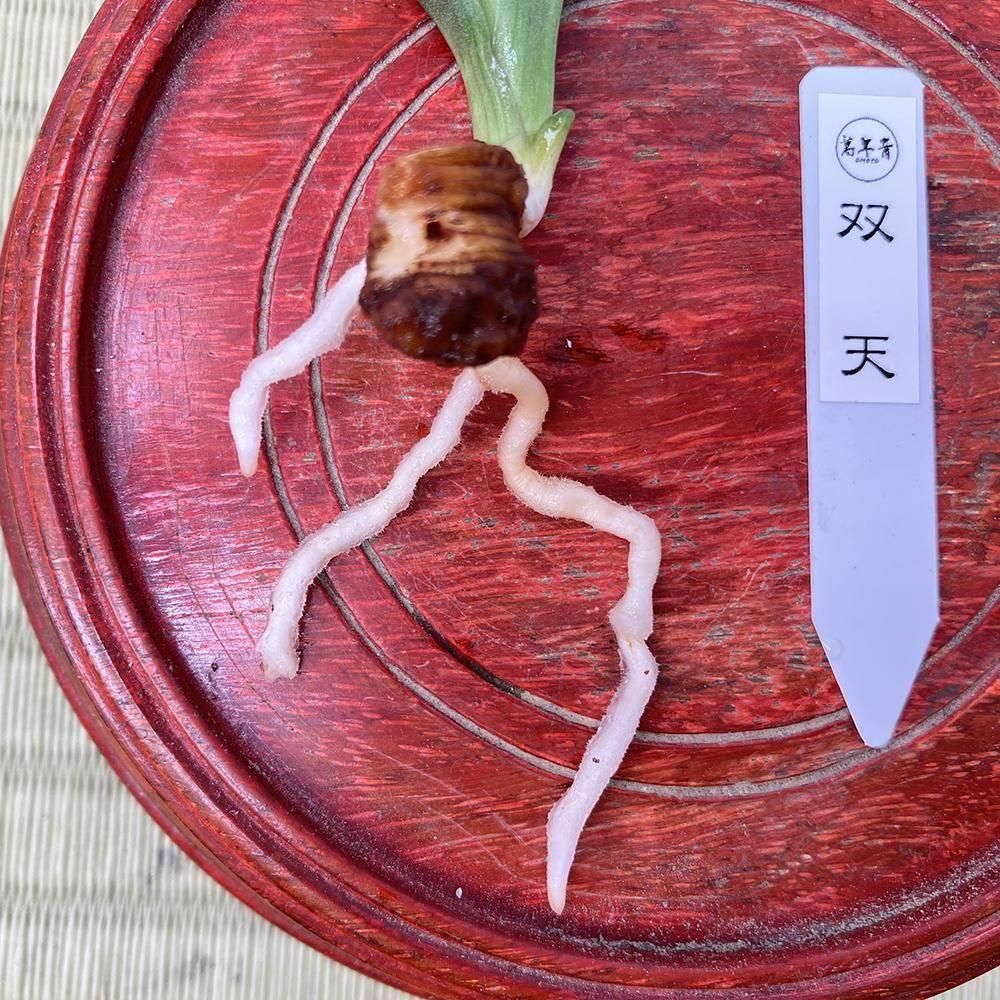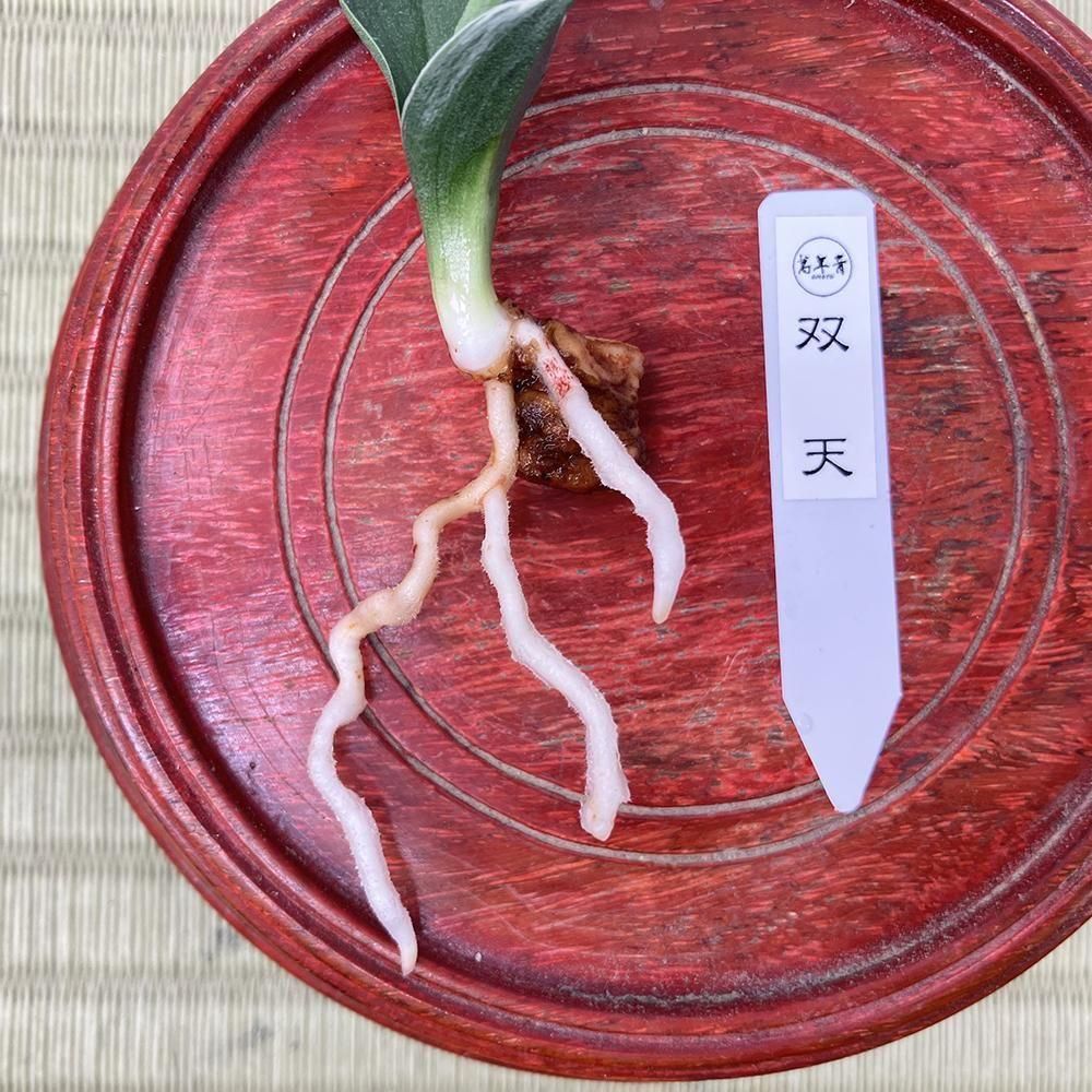 覆輪の芋吹き苗。自根2本、芋根なし。