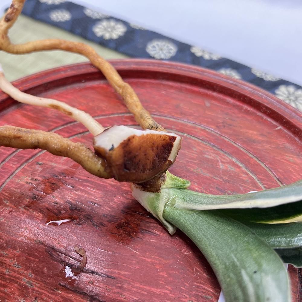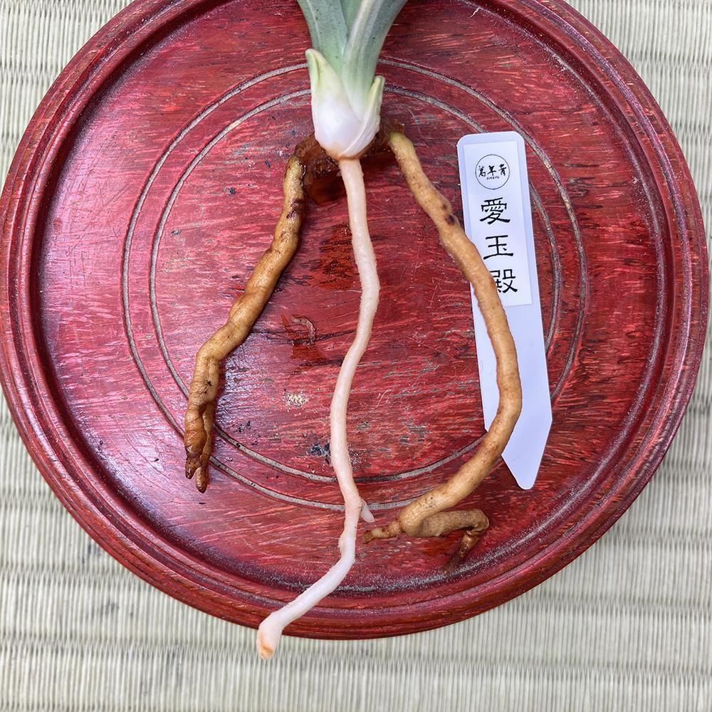 自根1本、芋根2本、1才の芋吹き苗。奴吹きを半分に切ったものです。